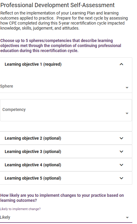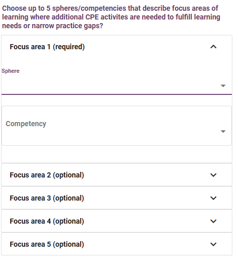 There are no right or wrong selections—practitioners have full flexibility to choose Spheres and Competencies that best align with their learning goals and needs. This update will not affect previously recorded activities or require any changes to past CPE entries.